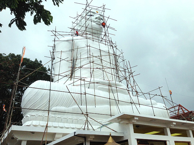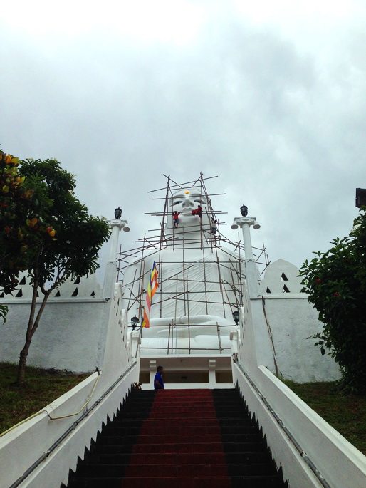It took me about 20 minutes to reach the Sri Mahabodhi Maha Viharaya Temple, and even though the distance wasn’t far, the temple was situated on a moderately steep hill. I had to climb up a rather steep path. The temple is located atop a hill, standing at a height of 850 feet, and its main attraction is an impressive 88-feet height Buddha statue, facing towards the Temple of the Sacred Tooth Relic. The fascinating thing is that you can spot this Buddha statue from the heart of Kandy itself. The entrance fee to the temple was 200 LKR (approximately 1.50 USD), and I had to leave my shoes and socks in the provided storage boxes for a small fee or donate them to the donation box. Unfortunately, when I visited, I was a bit disappointed because the main Buddha statue was undergoing restoration, so I couldn’t see it in its full glory. However, it didn’t dampen my visit as there was still a breathtaking viewpoint at the top of the shrine. From there, I could capture a panoramic view of Kandy, almost like a bird’s-eye view, which made the trip totally worthwhile.