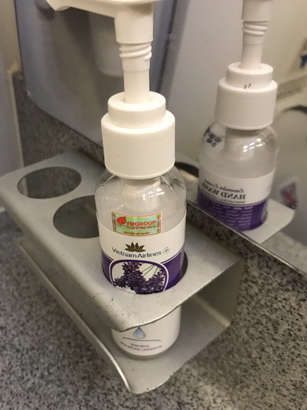After the plane had taken off and the seatbelt sign was turned off, I began to explore the lavatory. Overall, it was clean and there was soap provided for hand washing. I also noticed an interesting technique employed – a tea bag was hung on the door to help absorb any unpleasant odors.