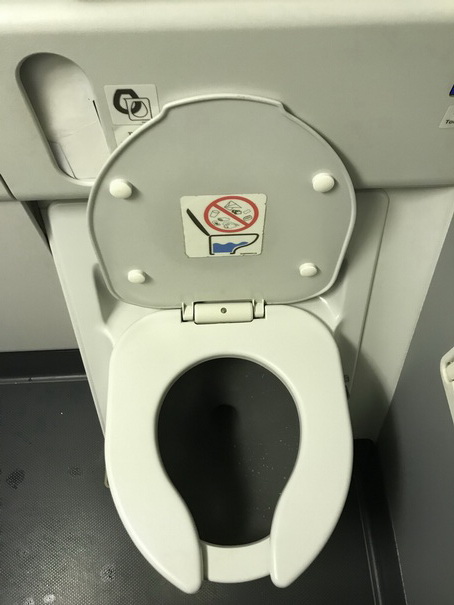 After all passengers had boarded, the captain pushed back and took off on time. Once the plane reached cruising altitude, I started exploring the lavatories.
