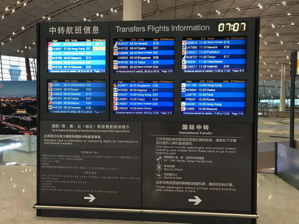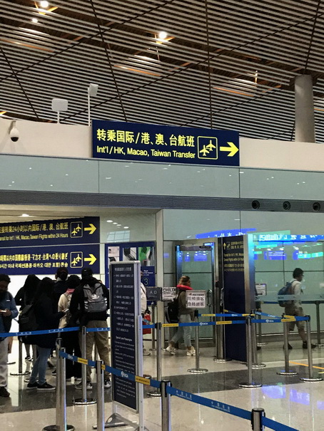After the plane parked at the Aerobridge of Terminal 3, I got off the plane and followed the signs that said “Transfer” to catch my next flight. (For this trip, I was transferring to a flight at Terminal 3, so I didn’t need to change terminals.) I had to go through passport and boarding pass checks (which were digital and scanned by machines, not done by people, at Beijing Capital International Airport). Then, I had to pass through security (I recommend allowing at least 2 and a half hours for connecting flights to be safe, as the lines can be long at this large airport and the security checks are very thorough, which can cause delays). It wasn’t a problem on my way to USA since I had over 4 hours, but on my flight back, I only had about an hour and a half to catch my connecting flight. I had to be Usain Bolt to make it in time.