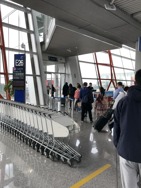 I checked in at the Air China counter at the row-U. When I arrived, the check-in line was long and stretched out. I tried to check-in online before going to the airport to save time, but the system did not allow it and said that I had to check in at the counter to show various documents since my final destination was the United States. Officials from the airline needed to see the documents before checking me in, such as proof of address or hotel reservations in the US, visa, etc. It took about an hour to check-in and get my boarding pass. (Note: if you are transiting at Beijing Capital International Airport and do not leave the Transit Area within 24 hours, you do not need a visa. This information was last updated on November 24, 2019.)