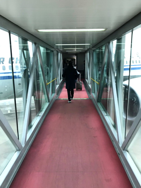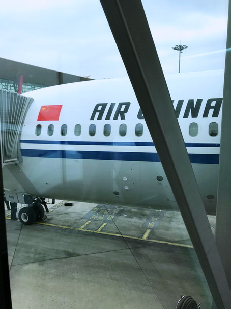 When it was time to board the plane, I went to the gate on time. When I arrived, Air China’s plane was already parked and passengers were lining up to board. I joined the crowd in the line. For this flight, most passengers were Chinese or foreigners, about half and half (I think foreigners may have been heading to connecting flights like me). After a while, the staff called for boarding by seat row.