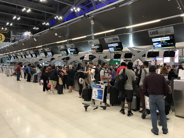 After checking in, loading my bags, and receiving my boarding pass, I went through the security process and immigration inspection as usual. I had two boarding passes, one for Bangkok-Beijing and another for Beijing-New York, and my checked bags were also marked as “checked-through,” so I could pick them up in New York without having to go through customs in Beijing. I forgot to mention that Air China allows Economy class passengers to check two bags weighing no more than 23 kg each, which is generous compared to other airlines in the same class.