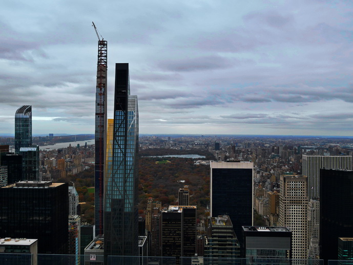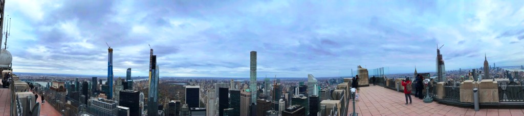 After buying my ticket, I went through the security scan process for the building and took the elevator straight up to the top floor of the skyscraper. I would suggest preparing warm clothing for the observation deck as it can be very windy and cold during the winter. When I arrived at the top, the sun had not yet set and I took the opportunity to capture a breathtaking photo of New York City and the Empire State Building from a high angle in the warm light. The Rockefeller Center has three observation decks, the first one is a large hall that can be used to warm up during the winter. If it gets too cold while taking pictures outside, you can come in and rest. The other two floors are located on the top and offer a 360-degree panoramic view of New York City and Central Park.