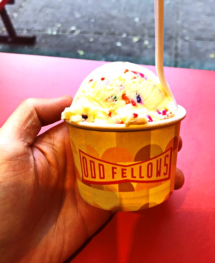 Afterwards, in the late afternoon, I decided to move to my final destination for the day (and also the last stop of my New York trip), which was to shop in the SOHO neighborhood (pronounced “So-Ho” and short for South of Houston street), about 800 meters from Washington Square Park. However, on the way there, I stumbled upon a cute little ice cream shop called Odd Fellow near the university area. It looked adorable (the ice cream shop, not the university students :-P), so I decided to give it a try and ordered a scoop for 5 USD. There were several flavors to choose from, but I can’t remember which one I picked. It looked pretty and tasted delicious, perfect for enjoying in the cold weather.