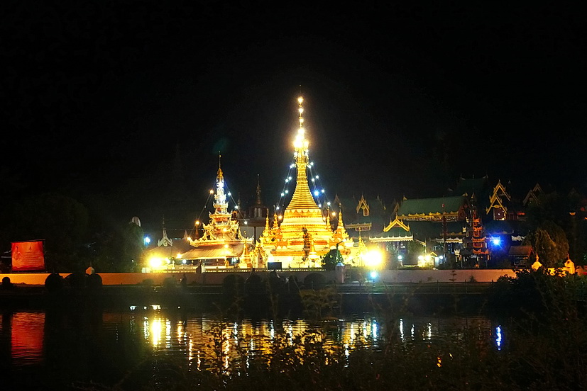 After visit the festival and have dinner with street-traditional food on walking street, before back to the hotel, I would like to see the night view of Chong Kham – Chong Klang Temples, near to bike rental shop. These 2 temples are the biggest ones in Mae Hong Son. The visitor MUST see these temples anyway. Today I just see the night view from outside. We will see inside the temples on tomorrow.