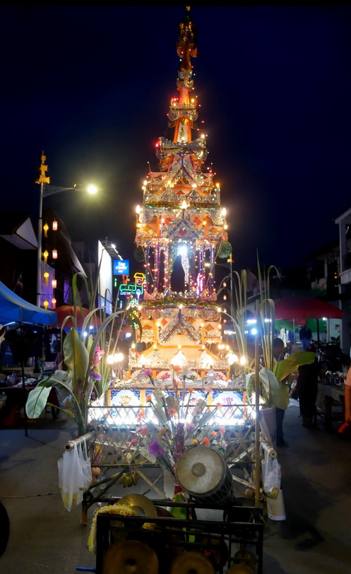 After check-in and keep my stuff in the room, the sun was just set, then, I bike to city center. The bike shop owner has told me that it has small festiva and walking market at Singha-Nat Barm Rung street. I have decided to go there to see the festival and find dinner.