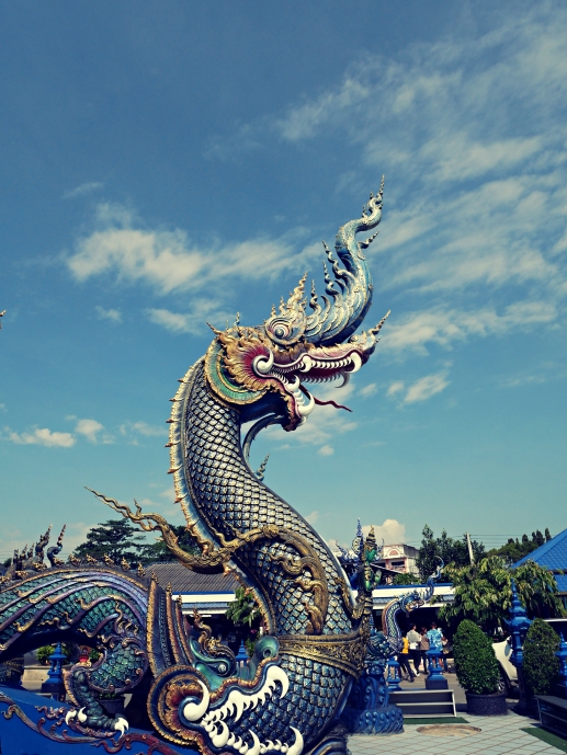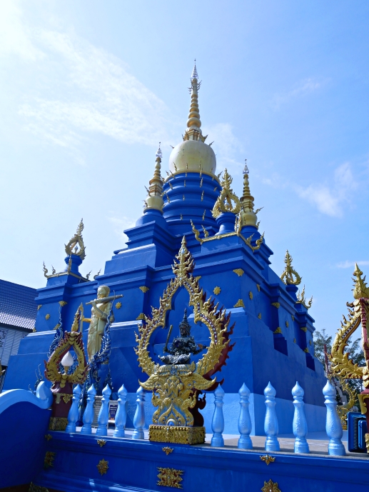 After leaving Wat Rong Khun, I continued on to another temple that shares a similar name but has a unique and “unusual” style: Wat Rong Seur Ten (The Blue Temple). It’s about a 45-minute ride from the White Temple, following the same route from the city and heading towards Mae Sai district. If you’re unsure of the way, you can always use Google Maps like I did.