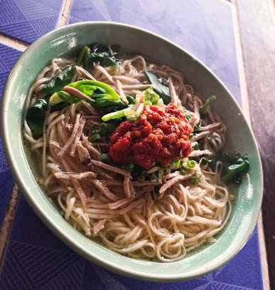 After settling in at the hotel and freshening up, it was time to find some dinner. Those who come to Doi Mae Salong should not miss the chance to try the famous Yunnan-style noodles at a well-known shop in the middle of the village, not far from the 7-Eleven. The highlight of these noodles is that they are homemade and the recipe comes directly from the authentic Yunnan province in China. They are delicious without any need for additional seasoning (for those who cannot handle spicy food, let the shop owner know beforehand as they are quite spicy). In addition to the noodles, there are also Local Gyoza available to satisfy your appetite. Both dishes cost only 40 THB (1.20 USD) each.