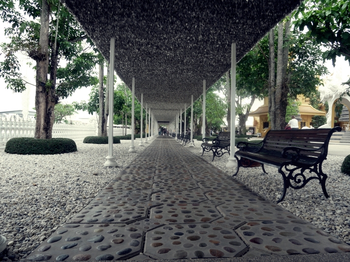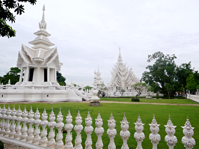 I have to admit that every corner of the Wat Rong Khun is truly stunning. Even the bathrooms are decorated with artwork! Besides the beauty, I also absorbed the principles of Buddhism through the exquisite artwork. I spent nearly two hours walking around, taking photos and admiring the intricate details.