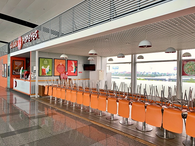 After completing all the processes, there is time to stroll around for some food and shopping. There are a few tax-free shops and restaurants open here, but most of them are closed because there are not many flights yet. Today we will be boarding at Gate 28, which is not too far away.