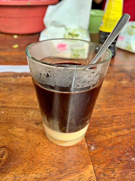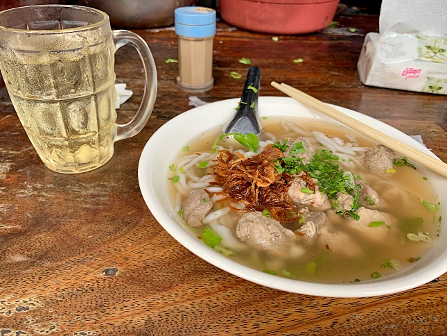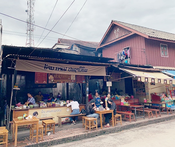 After we arrived Luang Prabang by new innovative Hi-Speed train yesterday in the evening, we relaxed at My Lao Hotel and Spa which is located near to Luang Prabang Night Market. Today, it’s time to start our exploration the world heritage city by UNESCO. We woke up in the early morning and aimed to one of the most famous local breakfast restaurant, Prachaniyom Coffee (Thai/Laos : ร้านกาแฟประชานิยม). The recommended foods from this shop is rice noodle in pork soup with traditional hot milk coffee. They are very nice to recharge the energy of our morning.