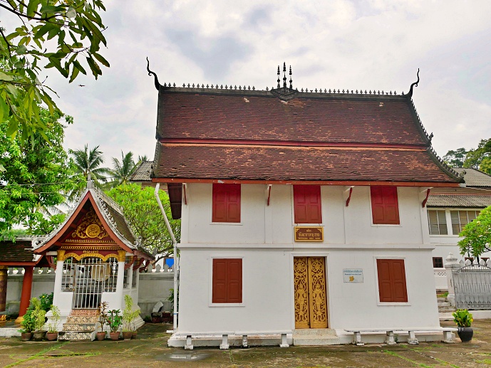 We enjoyed our lunch and relaxed for a while. Then, we headed to the one of important place of Luang Prabang what can tell us the history of this ex-capital of the nation, Royal Palace (Haw Pha Bang / Haw Kham). it is located just near to Wat Mai Suwannaphumaham. This palace was built since 1904 during the time of French colonial occupation as the residence of the Laos Royal Family. It was turned into the museum in 1975 by the communist Pathet Laos party came to power the country and ended the Laos monarchy. The Laos royal family was forced to leave to palace. The museum opening time is Wednesday – Saturday, 8am-11am and 13.30pm-15.30pm. The admission fee is 30,000 LAK (4 USD). It does not allowed to take photo in the museum and the sanctuary (but we can take photo at outside building and the garden). The locker for stuff deposit is just next to the ticket counter.