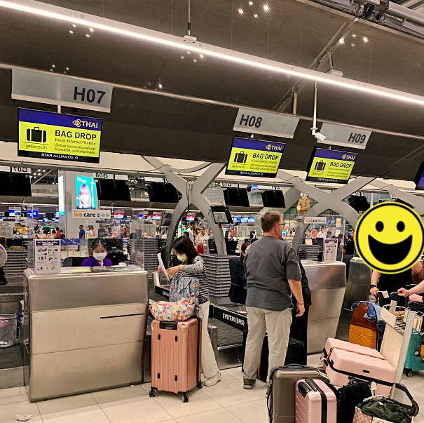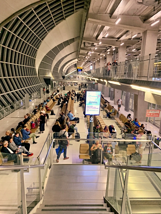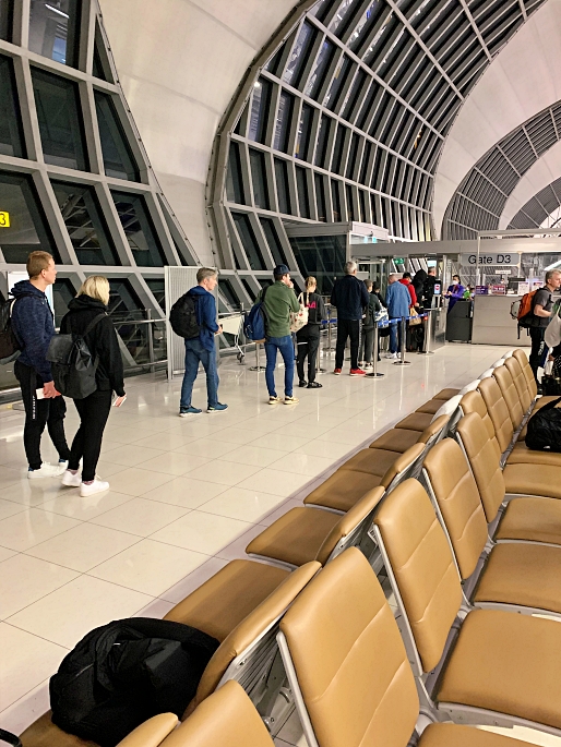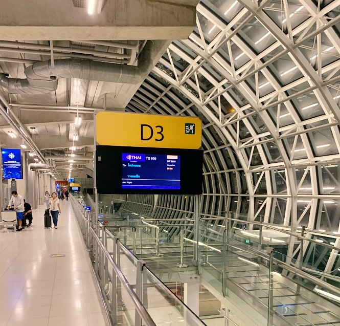We started our trip by arriving at Bangkok – Suvarnbhumi Airport (BKK) at 21.30pm, about 3 hours before before departure time. Thai Airways (Economy Class) could be checked-in at Row H and J. The queue at check-in counter was quite long. Even we did internet check-in already and could proceed to the baggage drop counter, but we spent about an hour to check-in and get the boarding pass.