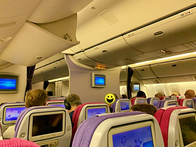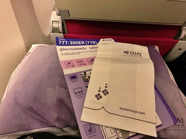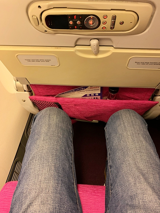 The economy seats were arranged as 3-3-3. It had PTV, blanket and pillow for every seat. The seat pitch is very comfortable for long-haul trip (my height is 183 cm).