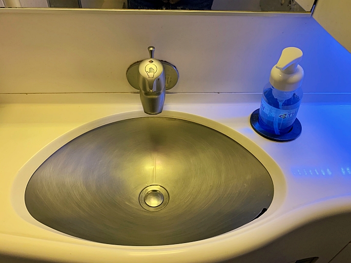 The lavatory was cleaned and sanitation equipment was well provided.