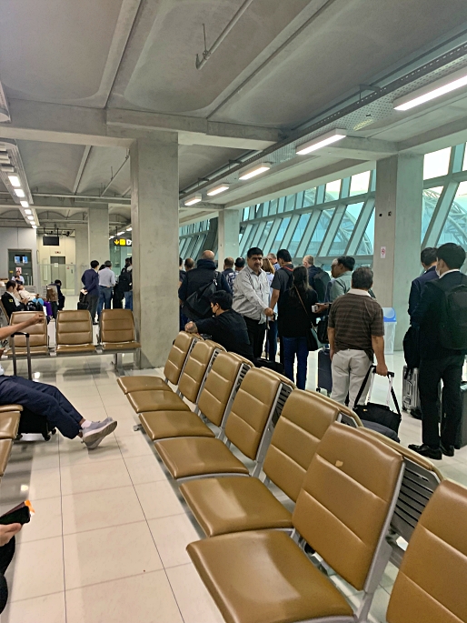 Once I had everything I want, I were at the gate about 6.45am. The boarding was on-time. Gate D1A is not the aero-bridge gate, it is the bus gate.