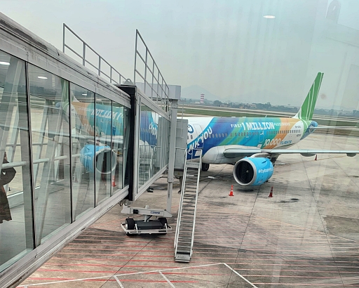 The morning flight on weekday at Hanoi airport was not so busy. The security checking was taken only 10 minutes. I would board at the fate number 8, the aerobridge. 🙂
