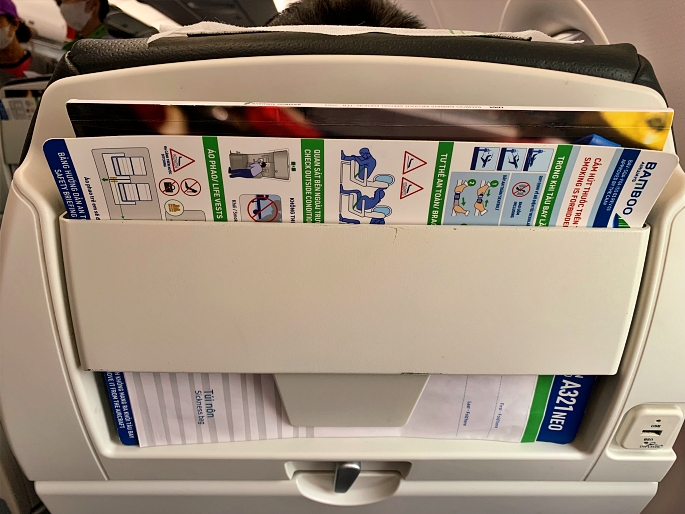 The seat pitch of Economy class was acceptable for short haul flight. It had safety instruction and magazine (LOOK) in front seat pocket.