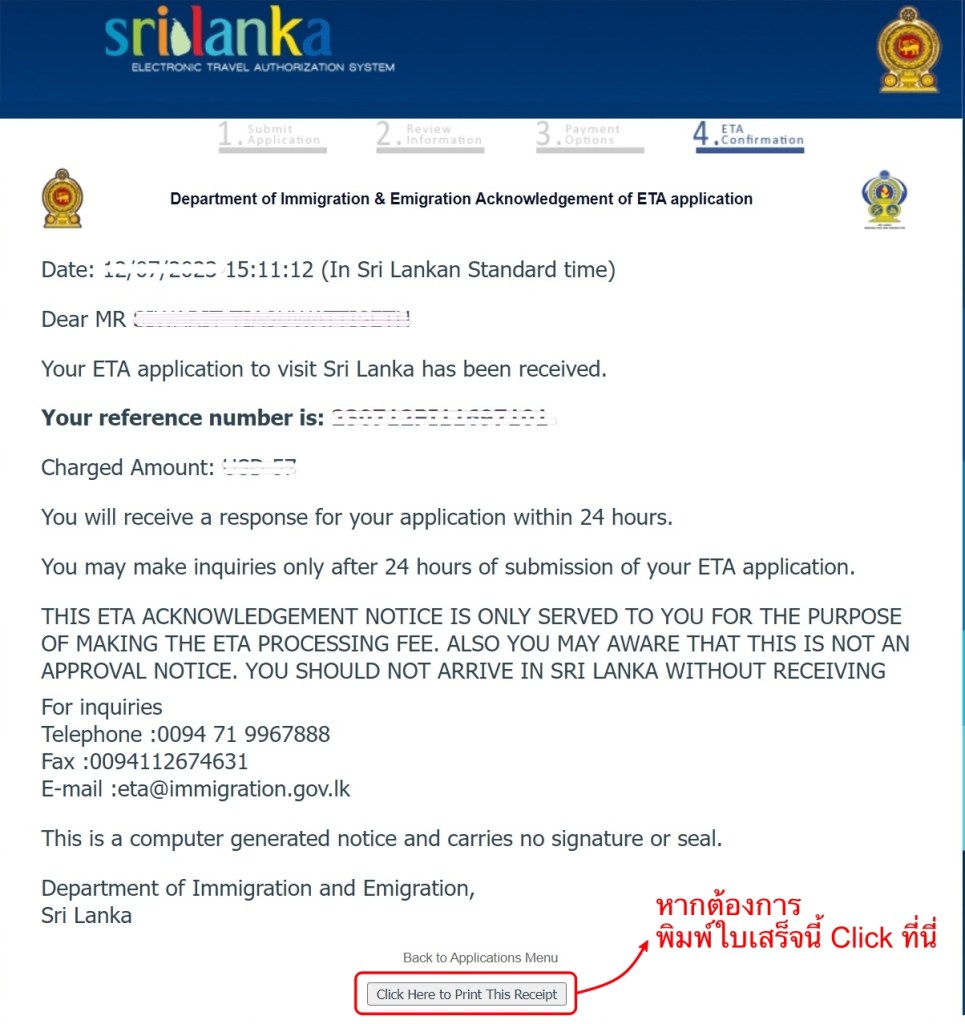 ใบเสร็จนี้ยังไม่ใช่วีซ่านะครับ ต้องรอให้ทางระบบอนุมัติก่อน ซึ่งใช้เวลาตรวจสอบไม่เกิน 24 ชั่วโมงหลังการสมัคร