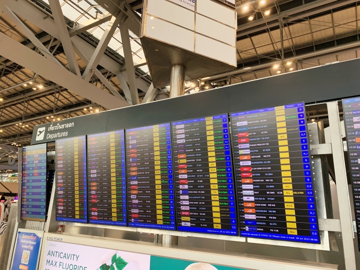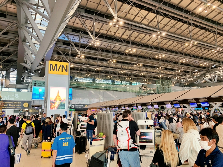 On the travelling date, my trip was started by I did arrive the Bangkok Suvarnabhumi Airport on 8AM. The check-in row for Myanmar Airways Int’l was at Row-N. Indeed, I did try to do internet check-in but it did not allow me to perform. I guessed that due to document verification (e.g. travel insurance, COVID vaccination certificate or visa) was needed, the check-in was available at the airport counter only. As mentionned, I travelled during long holidays, plenty of passenger in queue. I took about 20 minutes to complete the check-in process.