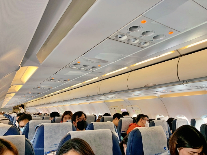 The boading time was started at 10.15AM. The aircarft had 2 classes, Business and Economy. For Business class, the seats were arranged as 2-2. While configuration of Economy class was 3-3 as same as other single aisle aircraft.
