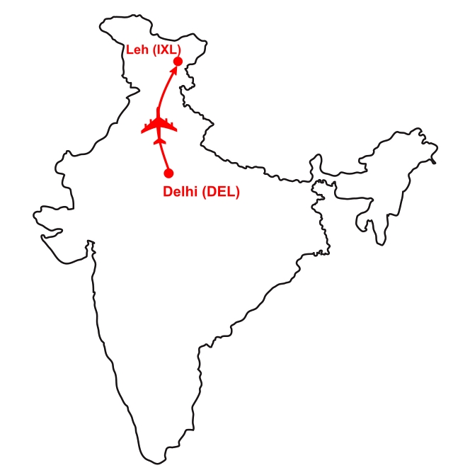 Route : Delhi (DEL) – Leh/Ladakh (IXL)