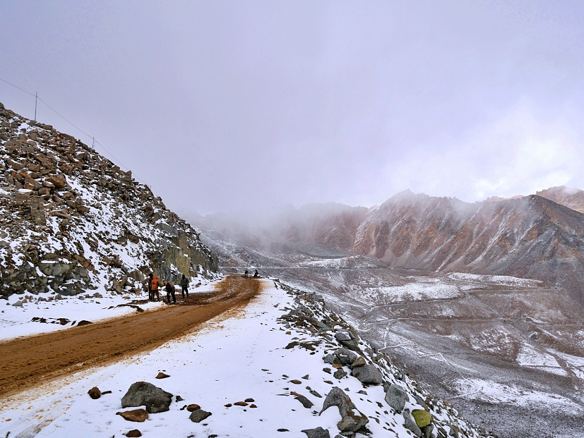 Fortunately, yesterday, as we were returning from our Alchi Road Trip to the hotel in Leh, we experienced a sudden rain shower. The hotel owner and Yanjour, our driver, informed us that if there was rain today, it might result in snowfall at Khardung La Pass the following day. As we reached Khardung La Pass, their prediction had come true – snow was gently falling, creating a magical moment. The white snow against the backdrop of the majestic mountains and the vast sky made it feel as though we were playing on the rooftop of the world !