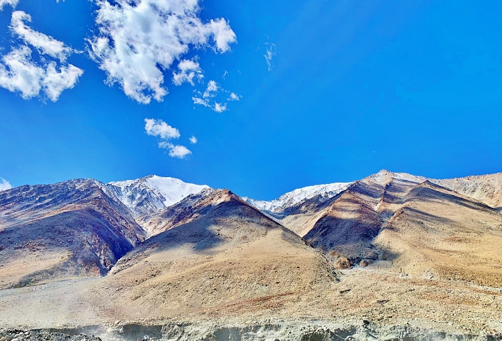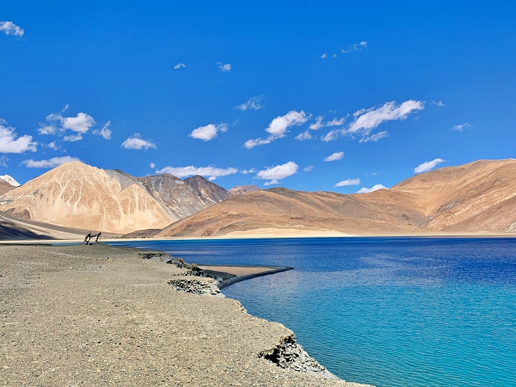 On the fifth day of our Leh trip, following our return from Nubra Valley on the third and fourth days, we set out to visit another of Leh’s landmarks and complete our journey on the final day: Pangong Lake. This breathtaking destination is located about four and a half hours from Leh city by car. In preparation for the longer journey ahead, Yanjour picked us up at 7 AM, earlier than on previous days.
