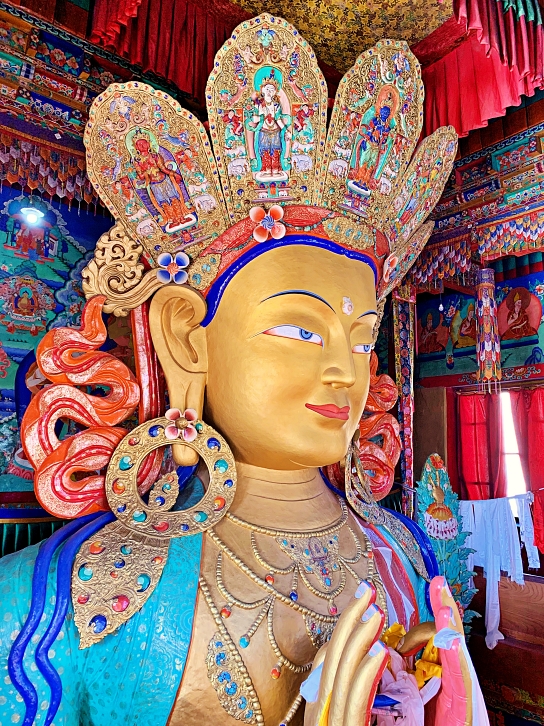 Thiksey Monastery, associated with the Gelug school of Tibetan Buddhism, is majestically perched atop a hill in Thiksey. Situated at an altitude of 3,600 meters, this twelve-storey complex is a treasure trove of Buddhist art, featuring stupas, statues, thangkas, intricate wall paintings, and ceremonial swords. A significant highlight of this sacred site is the awe-inspiring 15-meter-high statue of Maitreya, erected in commemoration of the 14th Dalai Lama’s visit to the monastery in 1970. Thiksey Monastery is open daily between 6AM – 7PM. The admission fee for foreinger was 20 INR/person (0.35 USD).