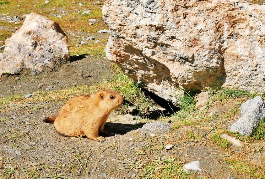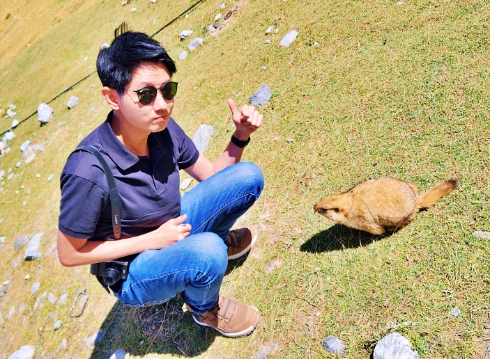 Next, we continued our trip for about 90 minutes and arrived at Tangtse, a place known for its expansive green fields along the banks of a small river. This area is one of the best spots to observe Marmots, the large ground squirrels that inhabit the region. Marmots typically live in underground burrows, and they are quite friendly. We could approach them, sit nearby, and take photos. However, it’s essential not to get too close, as it might startle them and cause them to run away.
