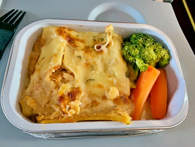 Then, the cabin crew started to sell the food and beverage. I had booked pre-order meal since I bought the ticket which is 20% cheaper and get priority service in flight too. ๐ Today, I did book chicken lasagna and hot coffee.