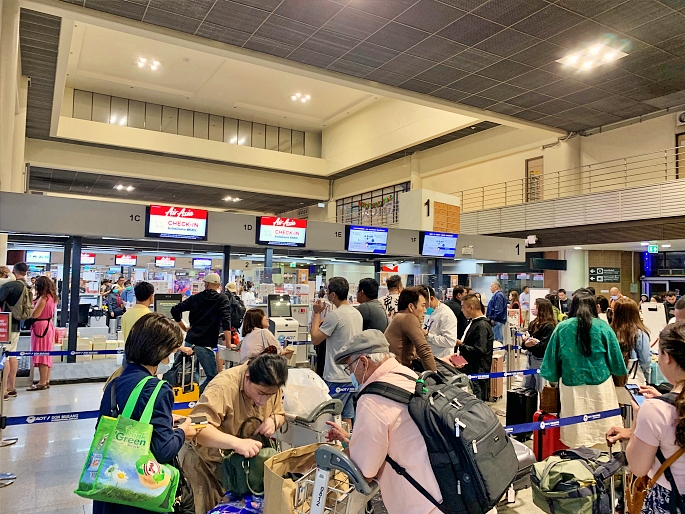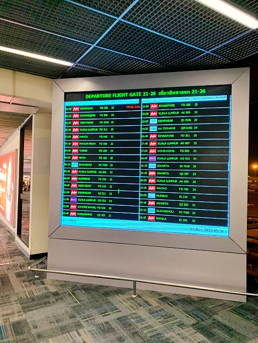 On traveling date, the trip was started when I arrived Bangkok – Don Muang International Airport before 5AM, about 3 hours prior flight time. The check-in counter of Thai Air Asia was at the row-1. But the queue was very long due to high traffic in the morning time. Fortunately, I did online checkin in advance and had no checked-in baggage. I just proceed to print the boarding pass at self-service kiosk. ๐