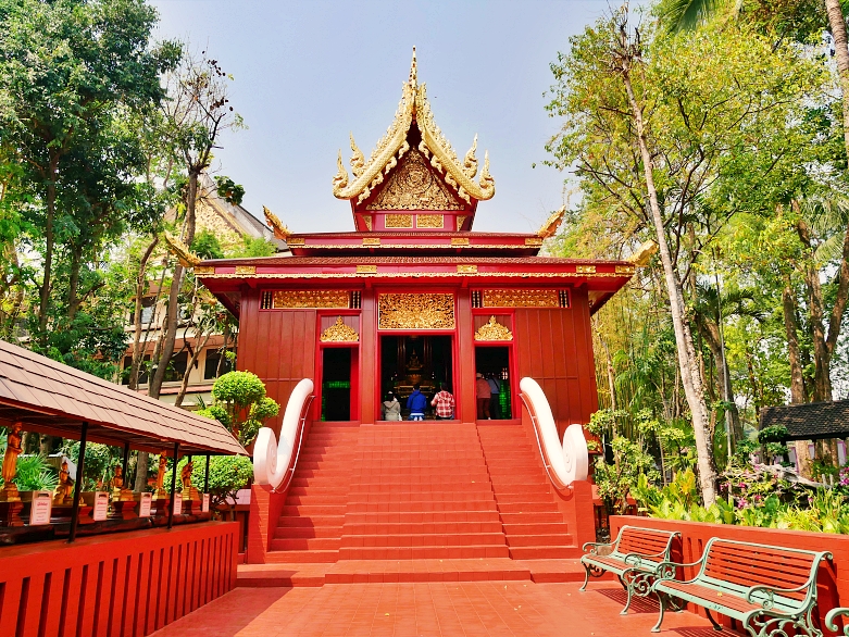 Wat Jed Yod was constructed in 1844 with simplistic Lanna architecture sbut was only completed a century later. The interior of the temple is different as it is mainly decorated in red and silver instead of the usual red and gold of most temples in Thailand. The word “Jed Yod” means “Seven Peaks” as this temple has 7-peaks pagoda. Inside the ordination hall, it has beautiful murals depicting stories from the Jataka, the collection of tales about Buddha’s previous births. Wat Jed Yod is open daily, 6AM – 6PM with no entrance fee.