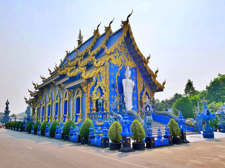 Wat Rong Suea Ten is a Temple that was restored by Mr.Phutta Kabkaew, a Local artist of Chiangrai and a student of Chalermchai Kositpipat. The construction of this temple was started in 2005 and completed in 2016. It is known for its striking modern artistic design. The temple is unusually beautiful with its unique applied arts by using a shade of blue and architectural beauty from a stucco artist. The ordination hall is uniquely designed by using the murals depicting the story of the Buddha’s life and enshrined with the Buddha image, Phra Phuttha Ratchamongkhon Bodi Trailok Nak (6.5 metres tall and has a lap width of 5 metres). Wat Rong Suea Ten is open daily, 7AM – 8PM with no entrance fee.