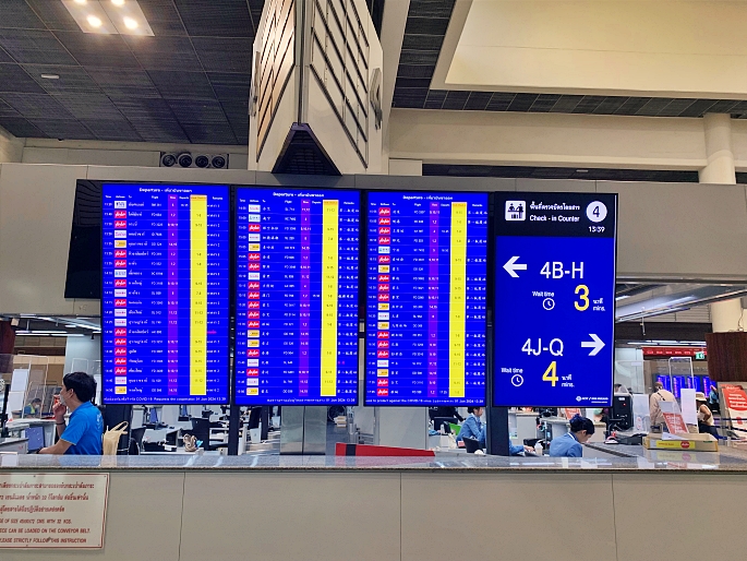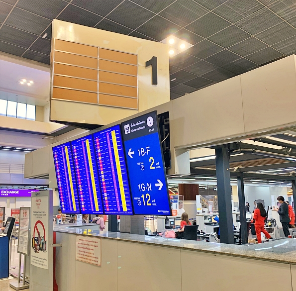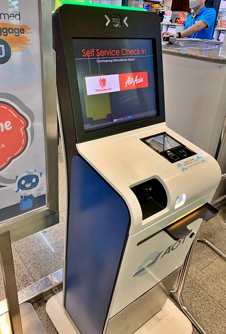 I had arrived Don Mueang International Airport by taxi on 2PM, about 3 hours before departure time. Thai Air Asia’s passenger could skip the queue by using automatic kiosk to check-in and print boarding pass. Then, the passenger could proceed baggage drop counter at Row-1 and Row-2 to manage checked-in baggage.