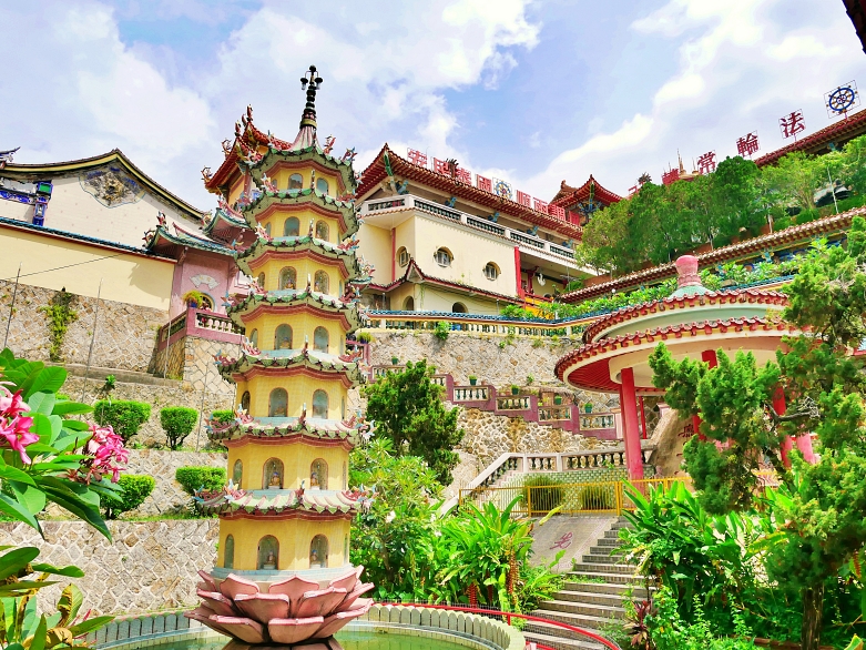 Kek Lok Si Temple is the largest Buddhist temple in Malaysia and an important pilgrimage centre for Buddhists from Hong Kong, the Philippines, Singapore and other parts of Southeast Asia. The temples was built over a period from 1890 to 1930, an inspirational initiative of Beow Lean, the abbot. The word “Kek Lok” means “Supremely joy” and “Si” means “Temple”. In Kek Lok Si temple, it has the complex of prayer halls, pavilions, and pagodas, all in different sizes and styles, making for an engaging visit framed by rainforest covered hills. The iconic of this temple are ordination halls in Chinese style, the bronze Guan Yin statue and Trio-style pagoda (the pagoda what has Thai, Chinese and Burmese style s in one). Kek Lok Si Temple open daily, 8.30AM – 5.30PM with free admission. But the visitors must pay some small cost to visit the Trio-pagoda (2 MYR/person or 0.50 USD) and to use inclined lift to Bronze Guan Yin Statue (6 MYR/person or 1.50 USD).