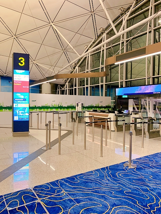 Cathay Pacific’s check-in counter at Hong Kong International Airport is at Row-A. The counter was open around 5.30PM. But I checked through my luggage since Bangkok already. I just could get the new boarding pass with updated boarding gate number here.