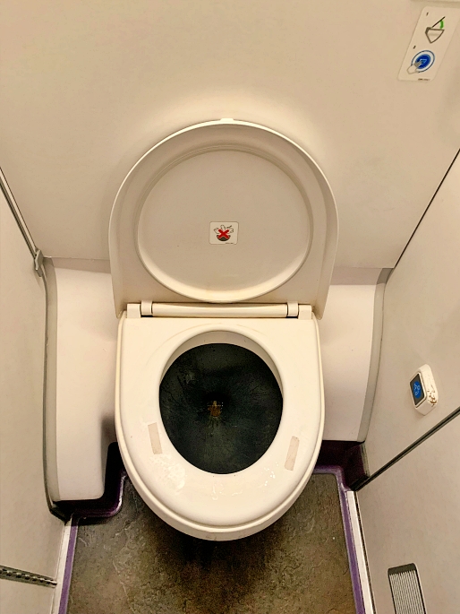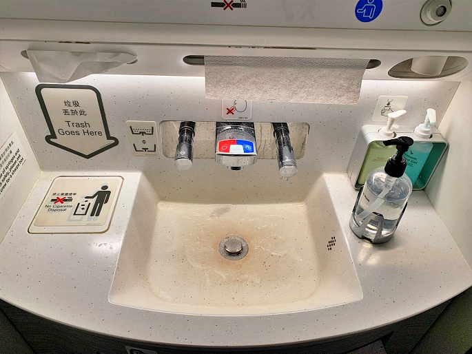 Once the boarding was completed, at 10.15PM, the flight was pushed back and taken off. Then, after it was at cruising altitude and the seatbelt sign had been turned off. I started to survey the lavatory. It was well clean and equipped with hand soap and hand cream. It also had hot and cold water at washing basin too.