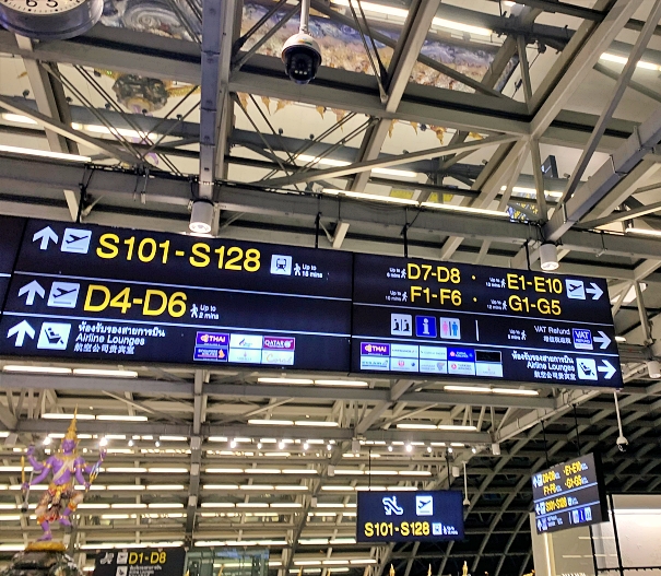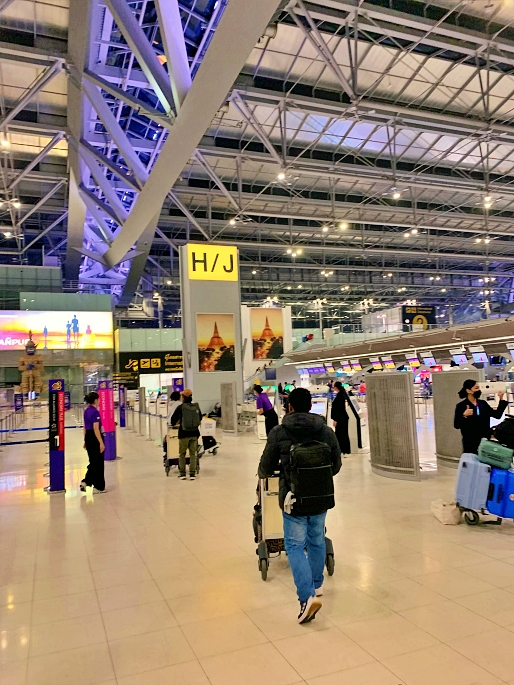 I started my trip by arriving Bangkok Suvarnabhumi airport at 4.30AM (about 2 and half hours before the flight time). Check-in counter for Thai Airways is located at the row H and J.