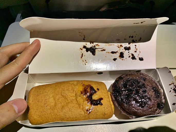 Then, the light meal had been served as the first service. It had 2 choices, chicken puff or veggie puff. I chose the chicken one to enjoy with orange juice.