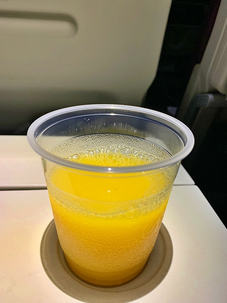 An hour after take-off, the cabin crews had started to serve the lunch. It had 3 choices for economy class, I selected rice with chicken and chose apple juice to sip after meal. 🍛