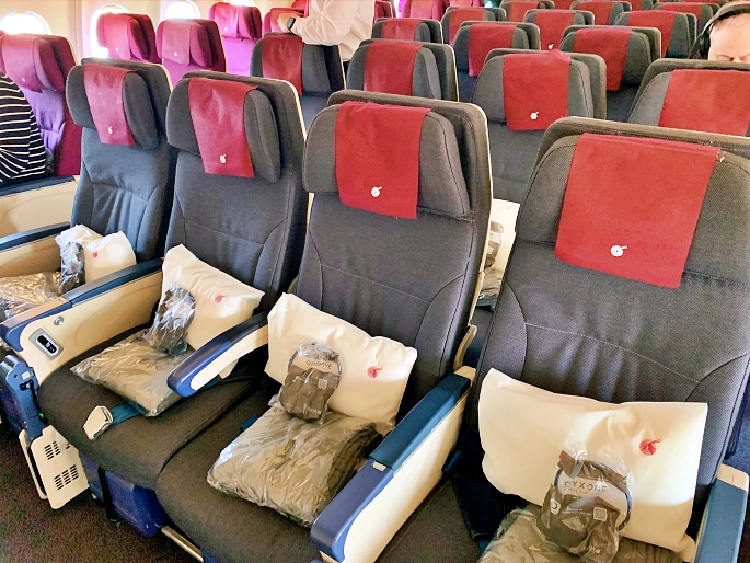 The economy seats had been arranged as 3-4-3. The legroom was large and super comfortable to medium-long haul flight. It had blanket, pillow and amenity kit (earphones, earplugs, eye mask, socks and toothbrush set) for all passengers. Furthermore, it has PTV at all seats with plenty choices of entertainment.