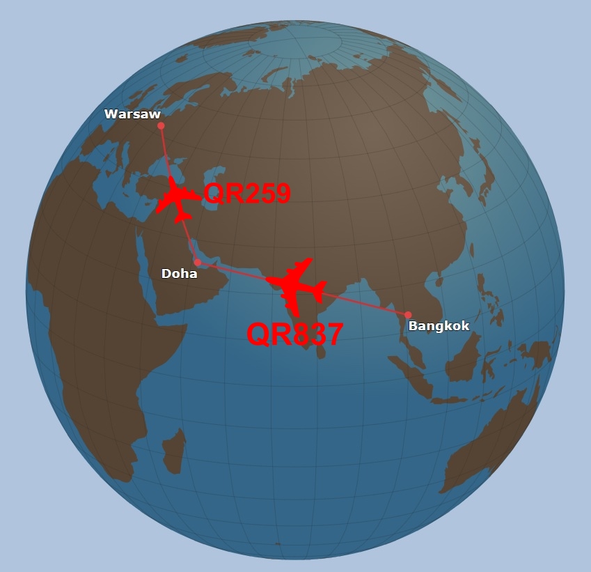 Route : Bangkok_Suvarnabhumi (BKK) – Doha (DOH)