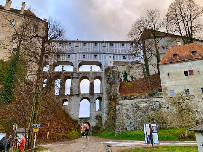 From the bus stop, I could walk to the center of Český Krumlov by use the overpass. The first place what I would start is Český Krumlov Castle which is just 700 meters away.
